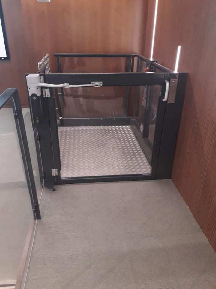 Lehner liftboy5 was used, including automated gates, special charcoal colour to match the modern auditorium.