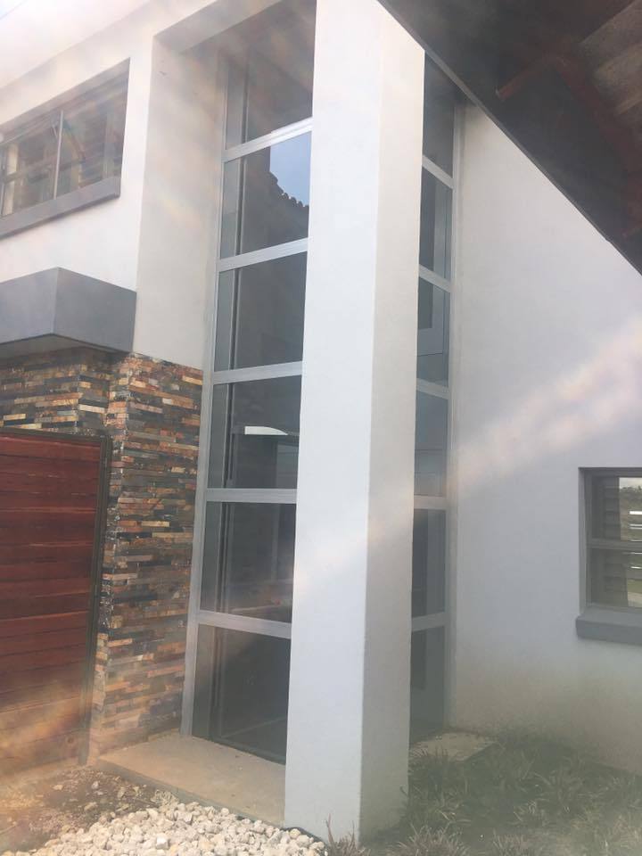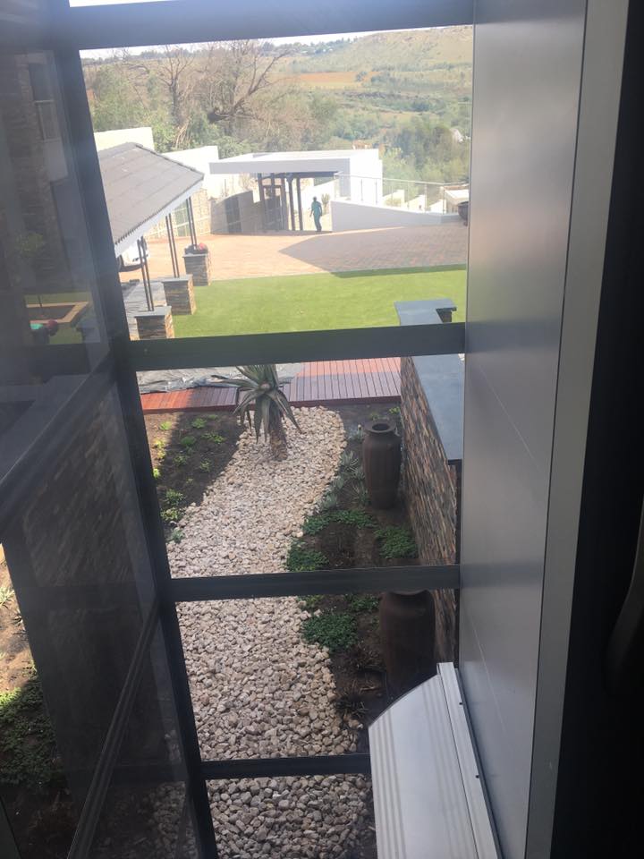 One of the lifts is an outdoor execution with two sided smoked dark glass and the second lift in side with one sided glass smoked dark glass.