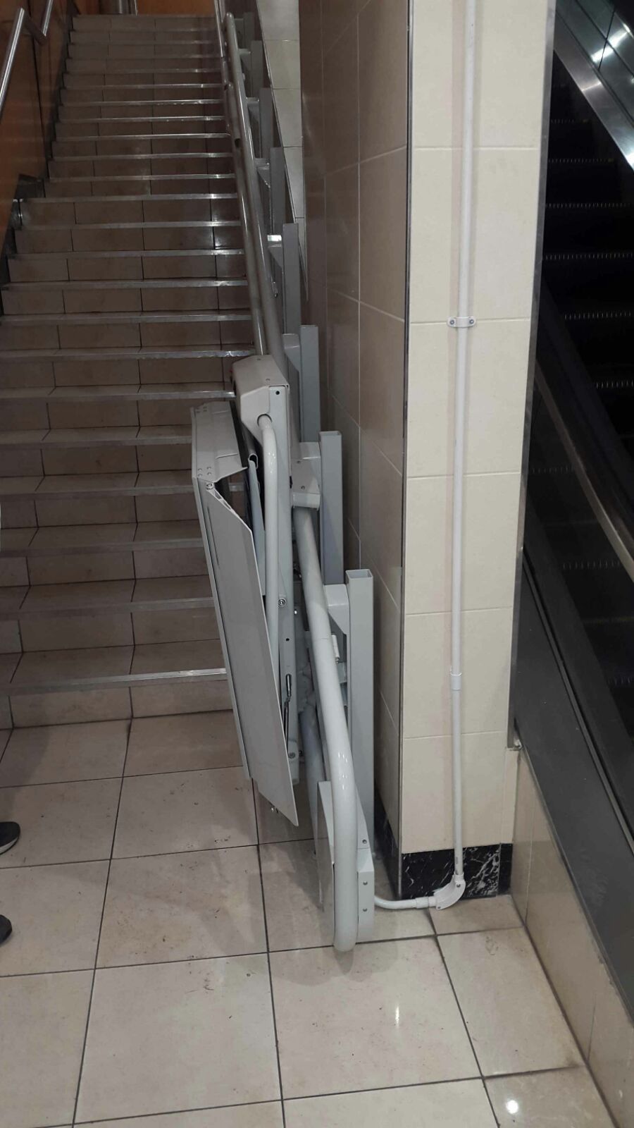 This platform stair lift is installed by the banking mall, and it will be used by wheel chair users as well as users with walking impairments.