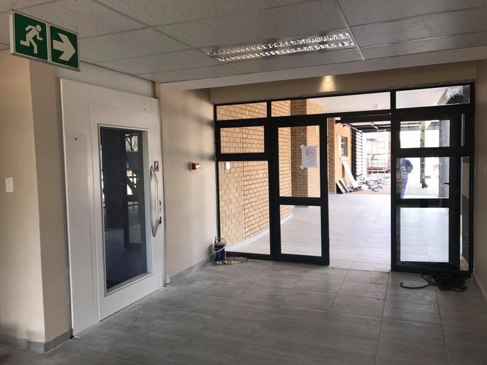 The faculty of law building at NWU Mafikeng is a new beautiful building on the NWU Mafikeng campus and we are proud to have our two stop 500 kg, NTD vertical platform screw lift here.