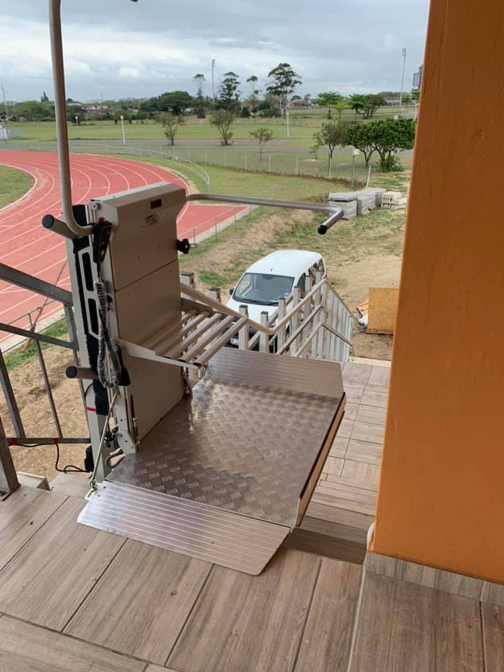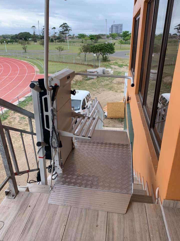 We have installed an outdoor platform stairlift with fold down seat at this new sports complex in Richardbay, KZN which will ensure accessibility to all.