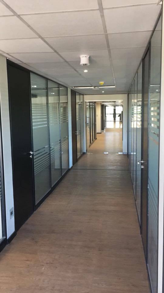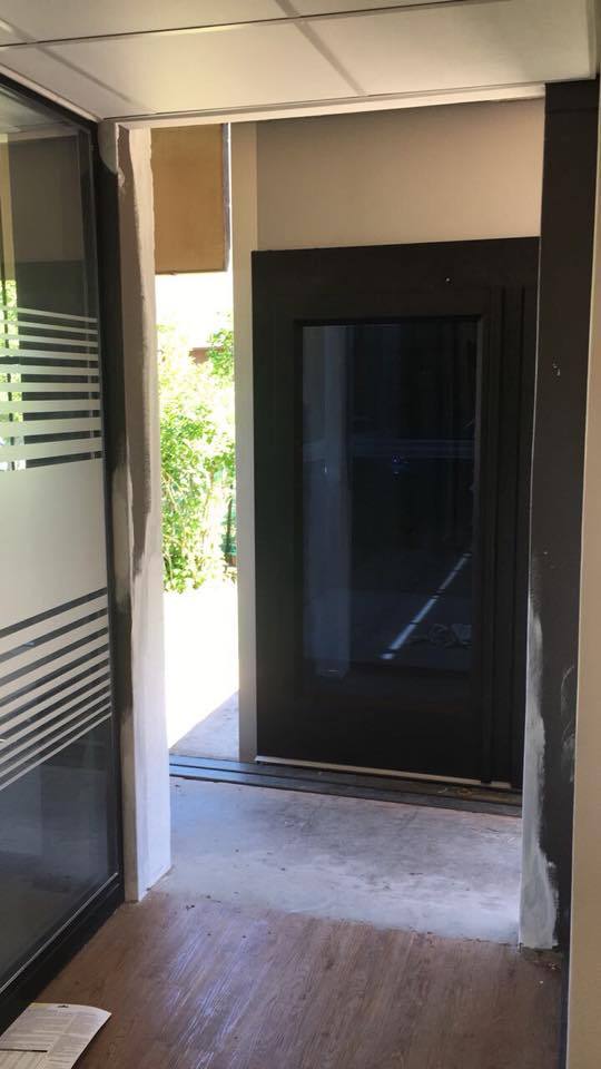 The lift has been fitted with glass panels with special heat deflecting tinting and the lift is two tone grey and black matching the stunningly refurbished offices.