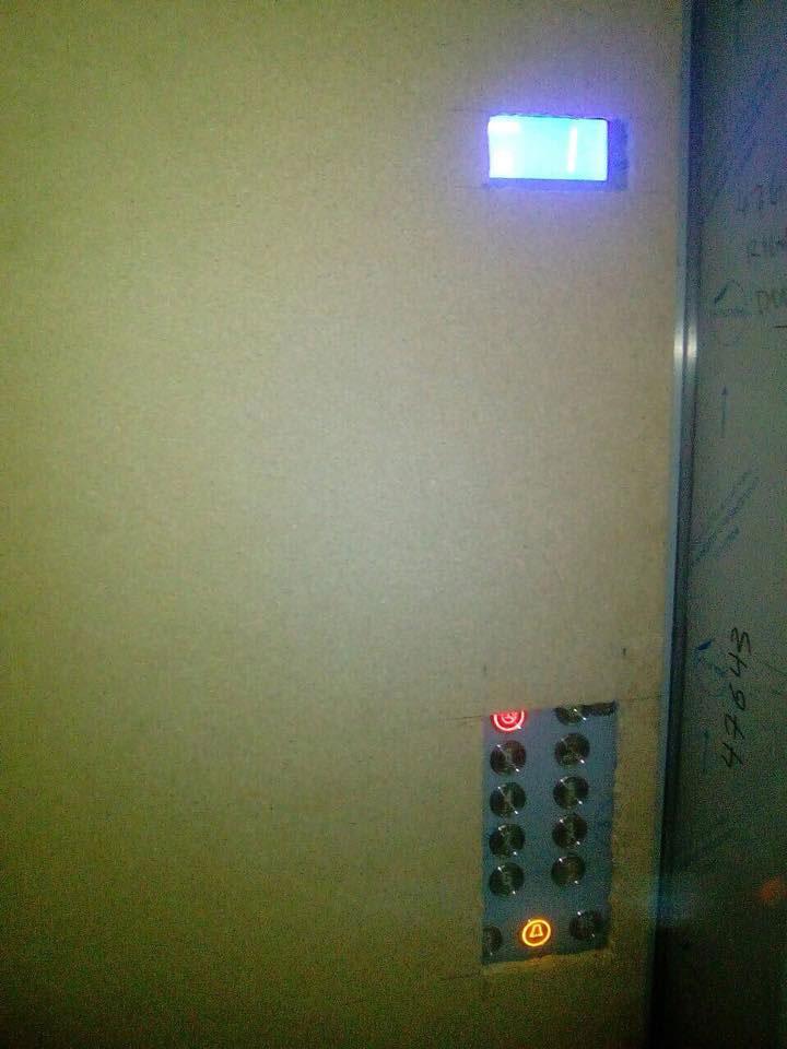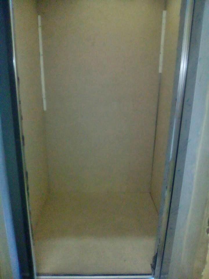 The lift is currently completely protected by wood panels as it will take some building materials to top floors in order to finish apartments.
