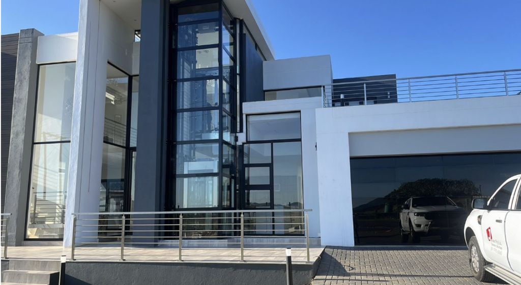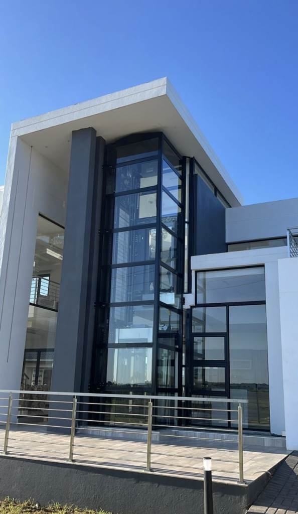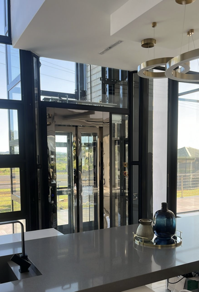 Panoramic house lift – 2 stop, 450 kg traction lift with an exquisite Doppler outdoor shaft Panoramic house lift – 2 stop, 450 kg traction lift with an exquisite Doppler outdoor shaft #Jessenlifts #houselifts #panoramic #tractionelevators #Johannesburg #outdoorshaft